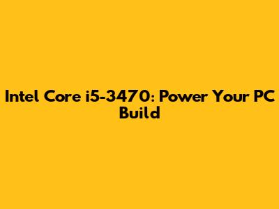 Intel Core I5-3470: Power Your PC Build