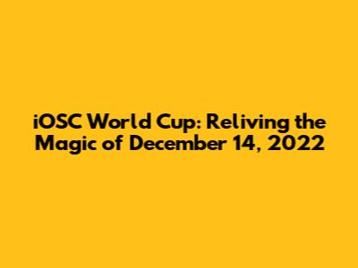 Hey sports fanatics! Remember the iOSC World Cup on December 14, 2022? That day was absolutely electric, filled with nail-biting moments, stunning goals, and unforgettable performances. If you're anything like me, you're probably still buzzing from the excitement! So, let's dive back into the action and relive the highlights, the key players, and the overall vibe of that incredible day. Get ready for a trip down memory lane, guys, as we unpack everything that made the iOSC World Cup on December 14, 2022, so special. We're going to break down the key moments, talk about the standout stars, and remember the drama that kept us glued to our screens. It was a day of pure footballing passion, and I'm stoked to share it with you all.