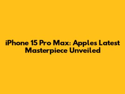 IPhone 15 Pro Max: Apple's Latest Masterpiece Unveiled