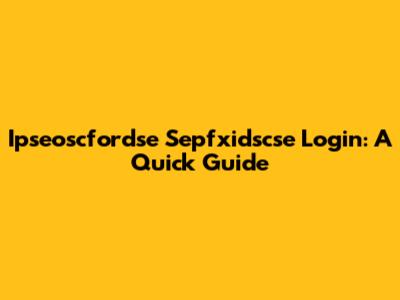 Ipseoscfordse Sepfxidscse Login Guide