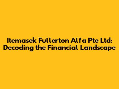 Unveiling Itemasek Fullerton Alfa Pte Ltd: What's the Deal?