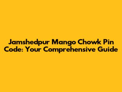 Jamshedpur Mango Chowk: Your Pin Code Guide