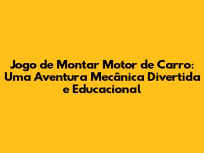 Jogo De Montar Motor De Carro: Diversão E Aprendizado