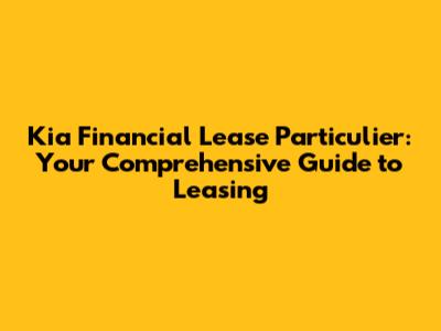 Kia Financial Lease: Your Guide To Particulier Leasing