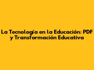 La Tecnología En La Educación: PDF Y Transformación Educativa