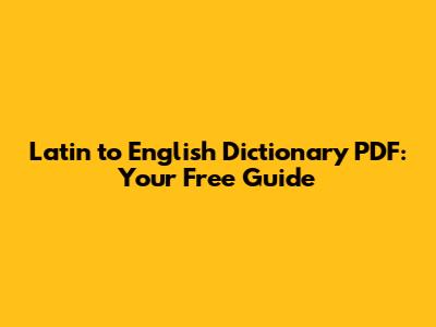 Latin To English Dictionary PDF: Your Free Guide