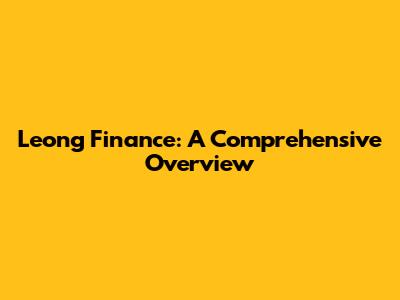 Leong Finance Insights: A Comprehensive Overview