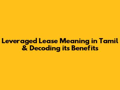 Leveraged Lease Explained: Meaning In Tamil & Benefits