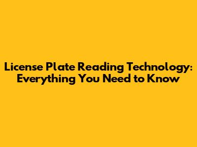 License Plate Reading Technology: Everything You Need To Know