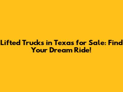 Lifted Trucks For Sale In Texas: Find Your Dream Ride!
