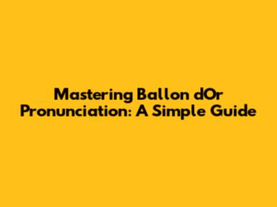 Mastering Ballon D'Or Pronunciation: A Simple Guide