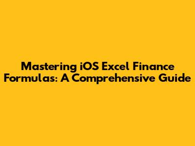Mastering IOS Excel Finance Formulas