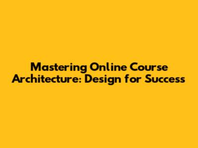 Mastering Online Course Architecture: Design For Success