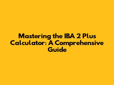 Mastering The IBA 2 Plus Calculator: A Comprehensive Guide