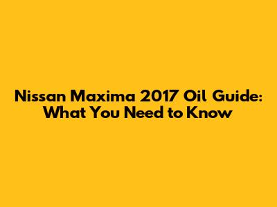 Nissan Maxima 2017 Oil Guide: What You Need To Know