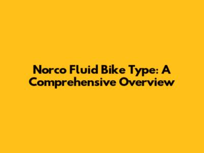 Norco Fluid Bike Type: A Comprehensive Overview