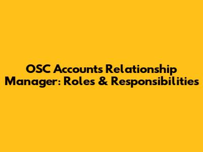 OSC Accounts Relationship Manager: Roles & Responsibilities