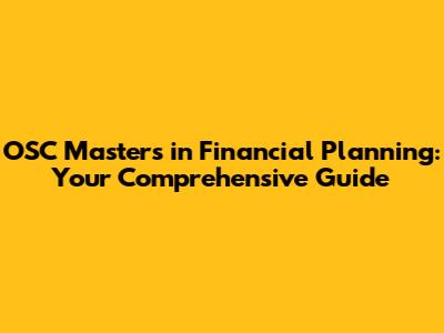 What is OSC Masters in Financial Planning?
