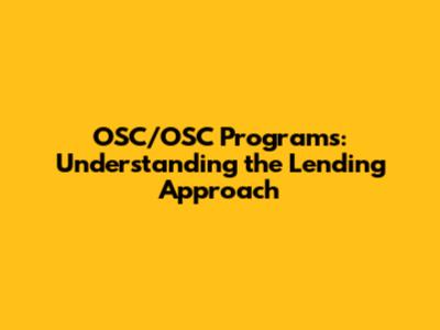 OSC/OSC Programs: Understanding The Lending Approach