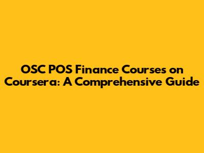OSC POS Finance Courses On Coursera: A Comprehensive Guide