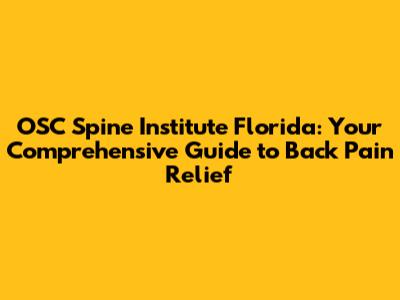 Hey there, fellow back pain sufferers! If you're anything like me, you know that back pain can be a real pain in the… well, you know. It can stop you from doing the things you love, make everyday tasks a struggle, and generally put a damper on your life. But don't worry, because there's hope! The OSC Spine Institute in Florida is a beacon of hope for those dealing with spinal issues. Let's dive deep into what makes them so special, and how they can help you get back to living your best life. This article serves as your go-to guide for everything related to the OSC Spine Institute, offering insights, details, and everything in between to make sure you're well-informed and prepared. Get ready to explore the world of spine health and discover how the OSC Spine Institute Florida can provide you with the relief you've been searching for. Remember, taking care of your spine is taking care of yourself, so let's jump right in!