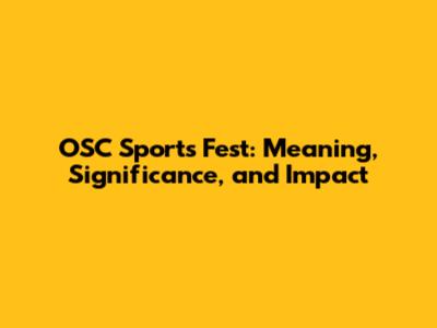 OSC Sports Fest: Meaning, Significance, And Impact