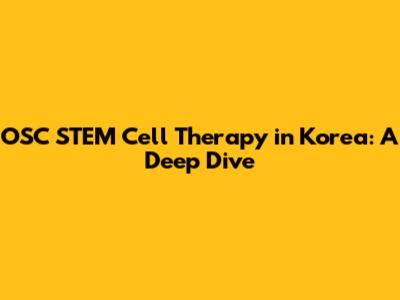 OSC STEM Cell Therapy In Korea: A Deep Dive