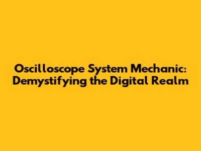 Oscilloscope System Mechanic: Guide & Insights