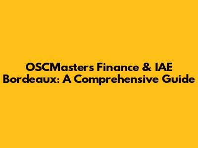 OSCMaster Finance & IAE Bordeaux: Your Path To Success