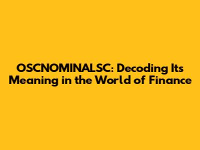 OSCNOMINALSC: Decoding Its Meaning In The World Of Finance