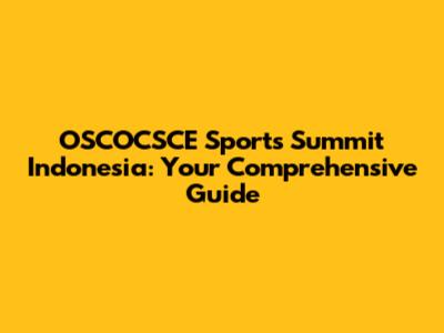 OSCOCSCE Sports Summit Indonesia: Everything You Need To Know