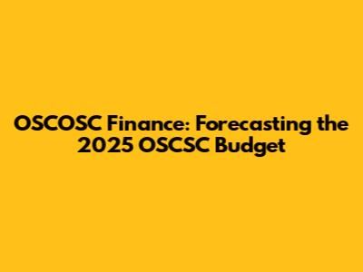 OSCOSC Finance: Forecasting The 2025 OSCSC Budget