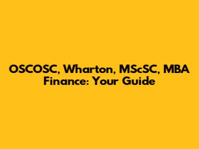 OSCOSC, Wharton, MScSC, MBA Finance: Your Guide