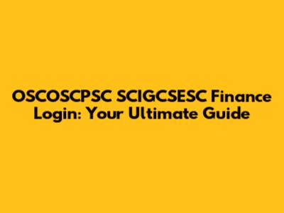 OSCOSCPSC SCIGCSESC Finance Login: A Complete Guide
