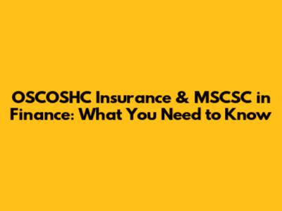 OSCOSHC Insurance & MSCSC In Finance: What You Need To Know