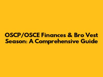 OSCP/OSCE Finances & Bro Vest Season: A Comprehensive Guide