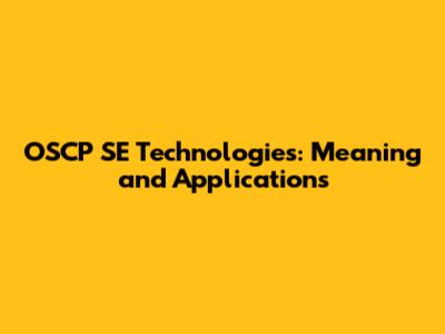 OSCP SE Technologies: Meaning And Applications