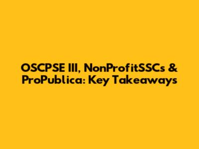 OSCPSE III, NonProfitSSCs & ProPublica: Key Takeaways
