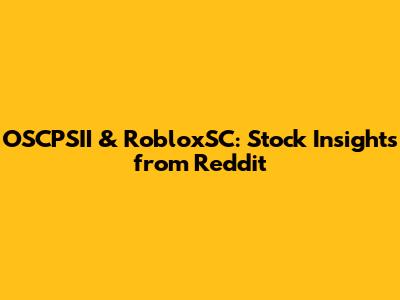 OSCPSII & RobloxSC: Stock Insights From Reddit