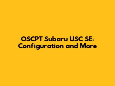 OSCPT Subaru USC SE: Configuration And More