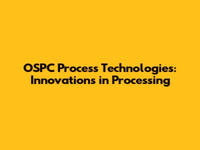 OSPC Process Technologies: Innovations In Processing