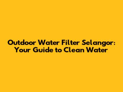 Outdoor Water Filter Selangor: Your Guide To Clean Water