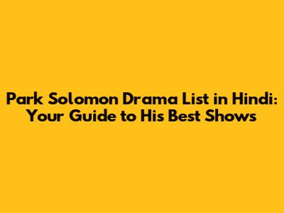 If you're diving into the Park Solomon drama list in Hindi, you'll want to know where to start. Here are some must-watch dramas featuring Park Solomon, with details on where you might find Hindi versions or subtitles:
