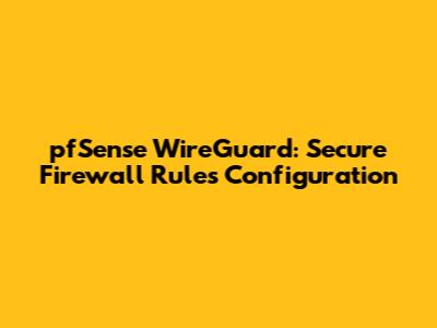 PfSense WireGuard: Secure Firewall Rules Configuration