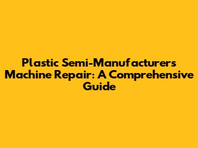 Plastic Semi-Manufacturers Machine: Guide To Repair