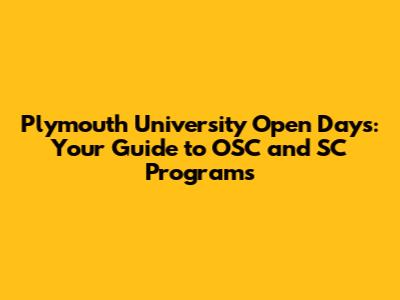 Plymouth Uni Open Days: OSC & SC Info