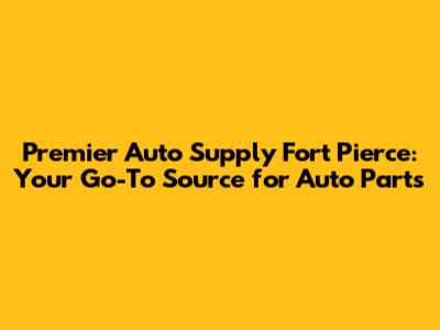 Premier Auto Supply: Your Go-To In Fort Pierce