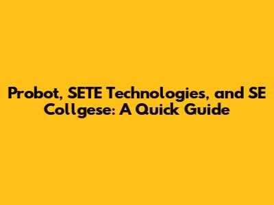 Probot, SETE Technologies, And SE Collgese: A Quick Guide