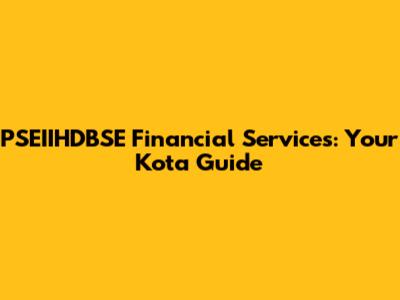 PSEIIHDBSE Financial Services: Your Kota Guide
