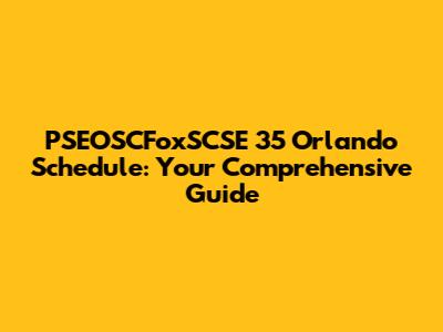PSEOSCFoxSCSE 35 Orlando Schedule: Your Guide